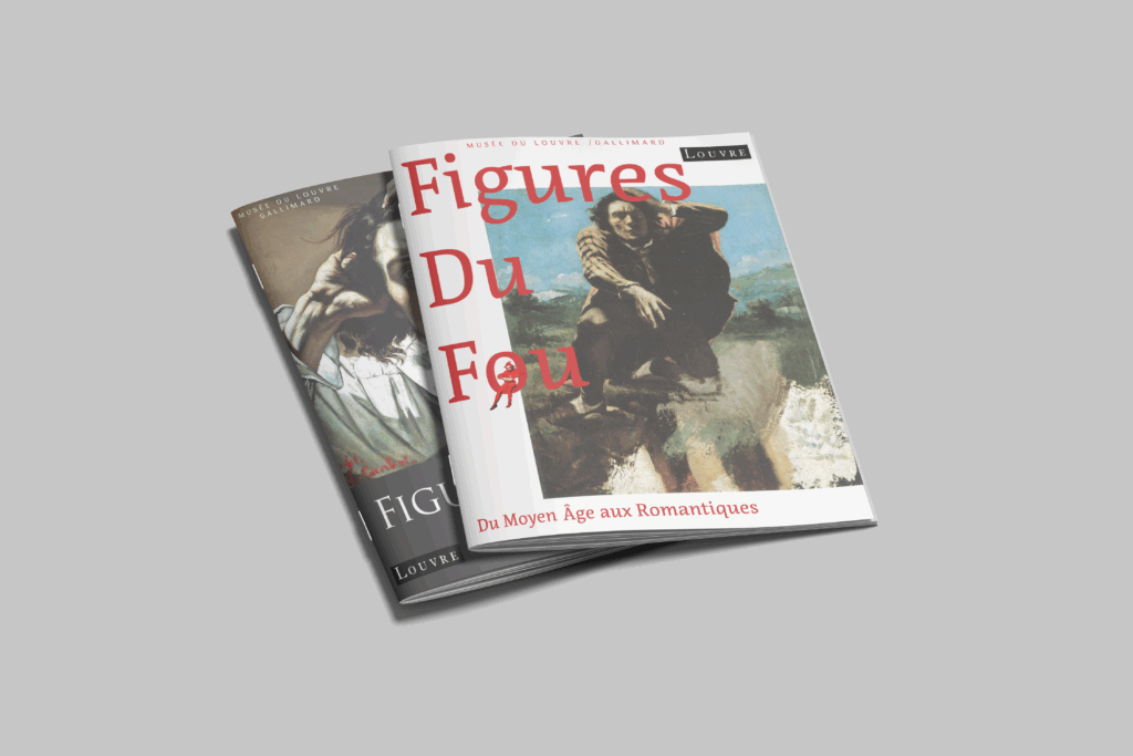 Création d’une couverture décalée et intrigante pour un catalogue fictif du Musée du Fou au Louvre, jouant sur les contrastes entre l’univers institutionnel du musée et la folie créative.